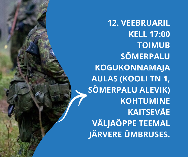 12. veebruaril toimub Sõmerpalu kogukonnamajas kohtumine Kaitseväe väljaõppe teemal Järvere ümbruses
