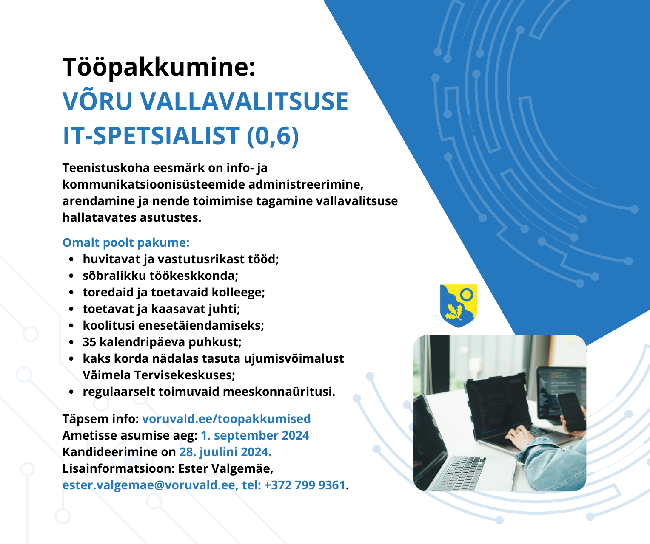 Avalik konkurss Võru Vallavalitsuse IT-spetsialisti leidmiseks