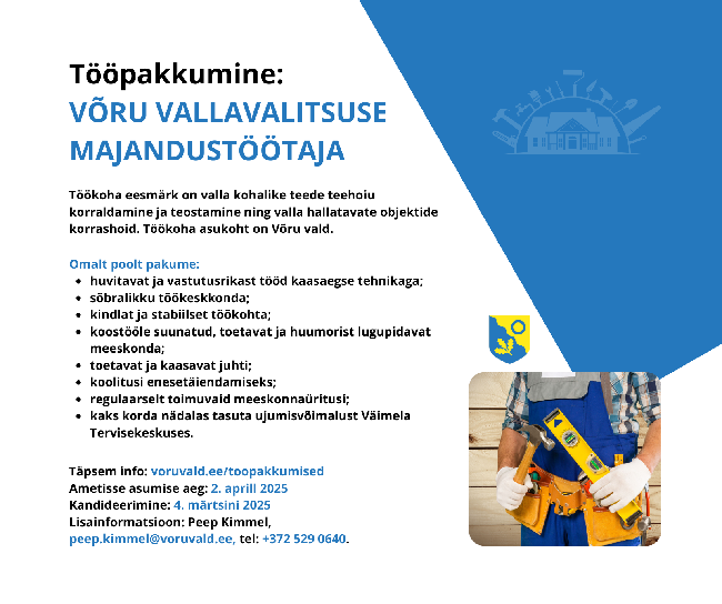 Lisainformatsioon: Peep Kimmel, peep.kimmel@voruvald.ee, tel: +372 529 0640.