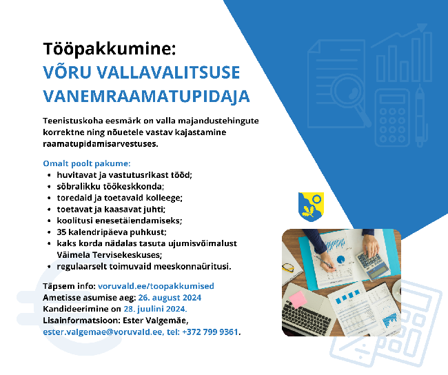 Avalik konkurss Võru Vallavalitsuse vanemraamatupidaja leidmiseks