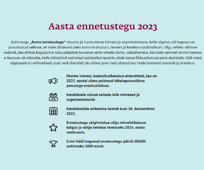 ERGO ootab kandidaate aasta ennetusteo auhinnale