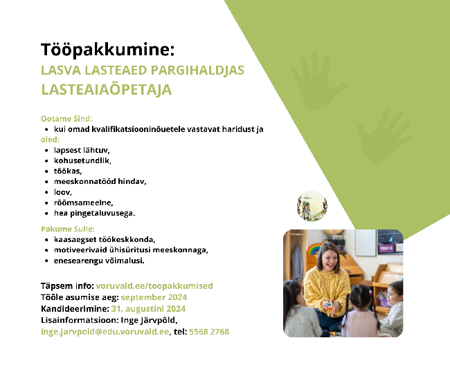 Lasva Lasteaed Pargihaldjas ootab oma meeskonda lasteaiaõpetajat