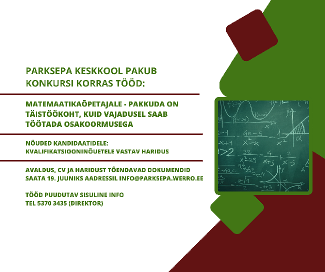 Parksepa Keskkool pakub konkursi korras tööd matemaatikaõpetajale.