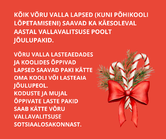 Kõik Võru valla lapsed (kuni põhikooli lõpetamiseni) saavad ka käesoleval aastal vallavalitsuse poolt jõulupakid.