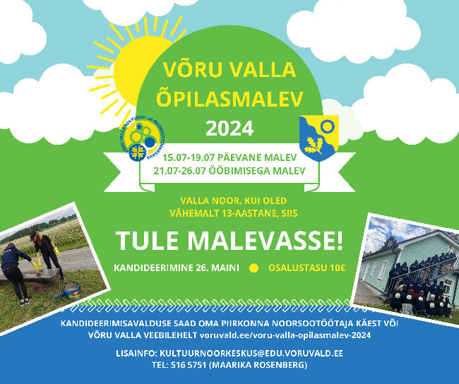 - Võru valla päevane õpilasmalev on 15.07-19.07.2024.