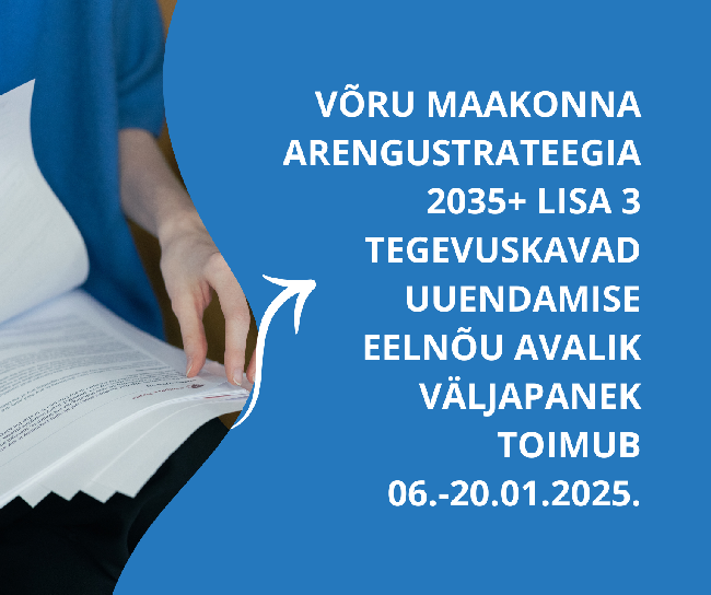 Võru maakonna arengustrateegia 2035+ Lisa 3 Tegevuskavad uuendamise eelnõu avalik väljapanek toimub 06.-20.01.2025.