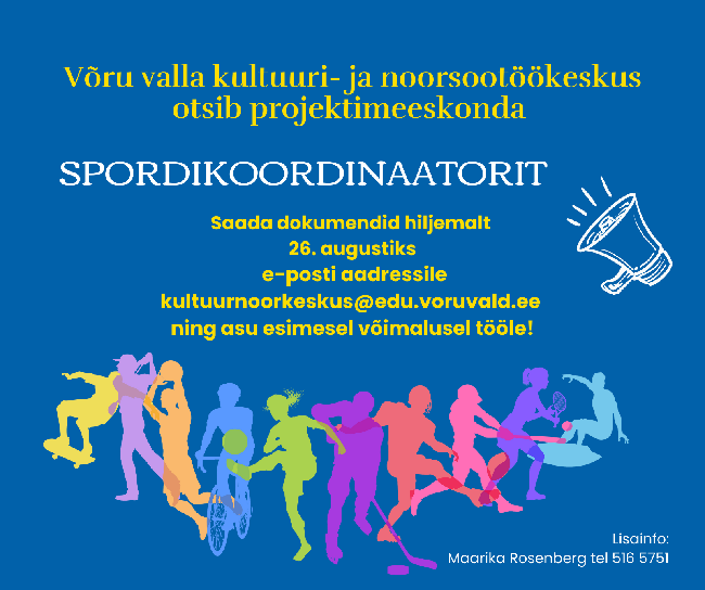 Võru valla kultuuri- ja noorsootöökeskus otsib projektimeeskonda spordikoordinaatorit