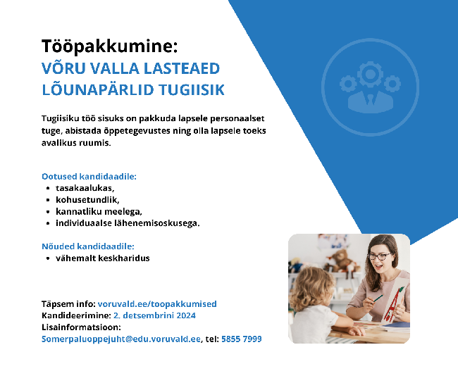 Võru valla lasteaed Lõunapärlid ootab oma meeskonda tugiisikut (Sõmerpalu majja).