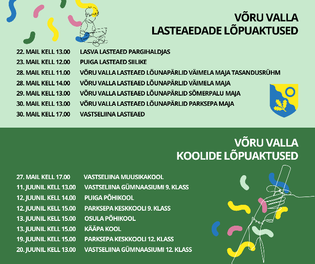Võru valla lasteaedade ja koolide lõpuaktuste ajad 2025