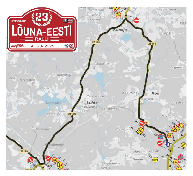 Laupäeval, 5. juulil 2025 kell 10:00–15:40 suletakse 23. Lõuna-Eesti Ralli 2025 toimumisega ajutiselt üldiseks liikluseks Kõo-Kündja-Pari teelõik.