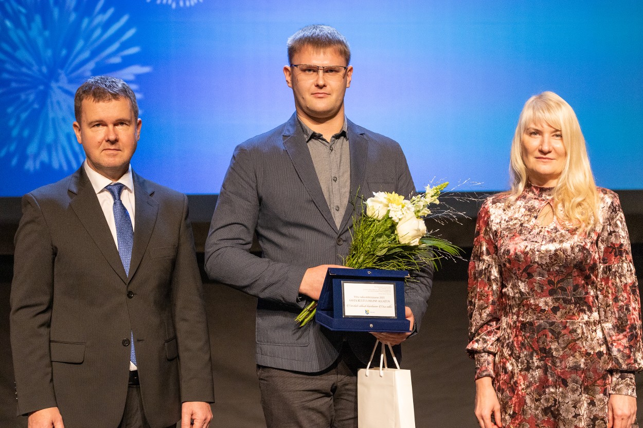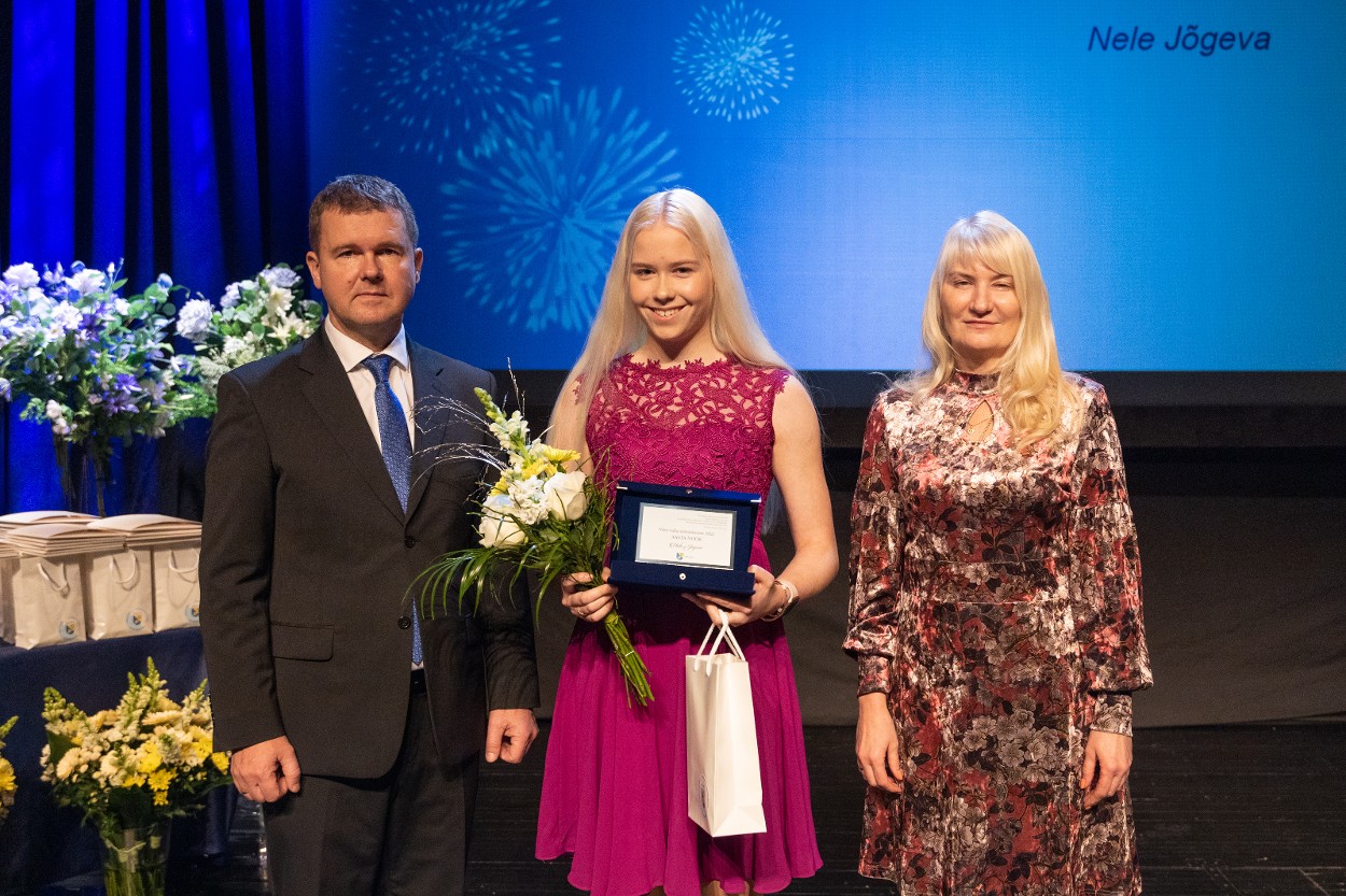 Võru vallavanem Kalmer Puusepp, aasta noor Nele Jõgeva ja Võru valla abivallavanem Piret Otsatalu. Foto: Mariliis Kivimäe