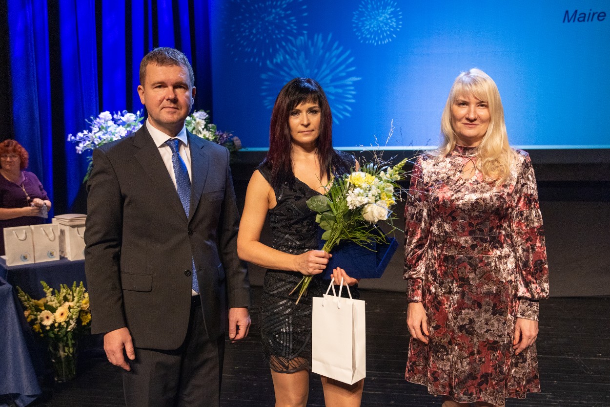 Võru vallavanem Kalmer Puusepp, aasta terviseedendaja Maire Kaur ja Võru valla abivallavanem Piret Otsatalu. Foto: Mariliis Kivimäe