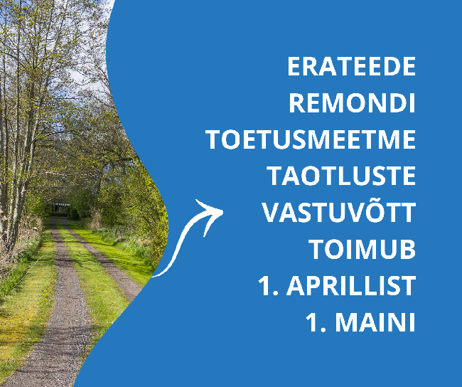 Erateede remondi toetusmeetme taotluste vastuvõtt toimub 1. aprillist 1. maini
