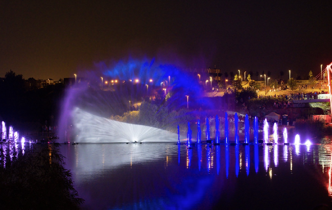 Fotol: Lava järvemuusika-festivalile lisab uudsust sündmuse ajaks Lasva järvele paigaldatav vesiekraan, mis pakub päikeseloojangul koos kontserdiga publikule maagilist elamust.