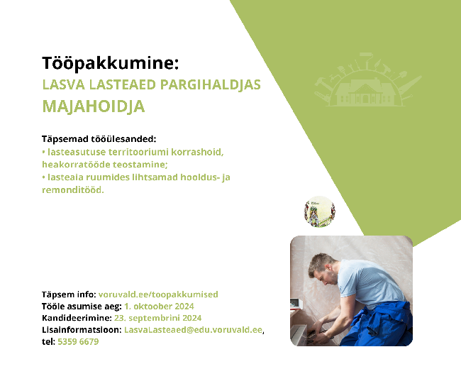Lasva Lasteaed Pargihaldjas võtab tööle majahoidja (0,5 koormusega).