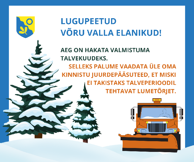 - kui kinnistu omanik ei soovi mingil põhjusel igakordset või üldse talvist lumelükkamise teenust, siis anda kindlasti sellest teada valla teedespetsialistile Peep Kimmelile.