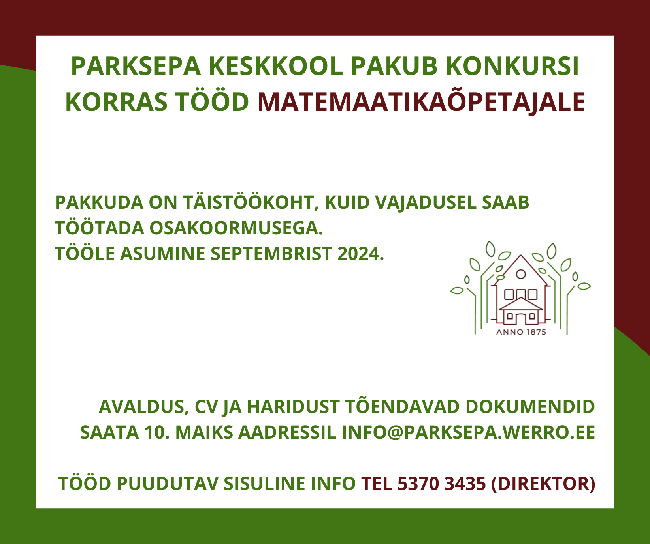 Parksepa Keskkool pakub konkursi korras tööd matemaatikaõpetajale.